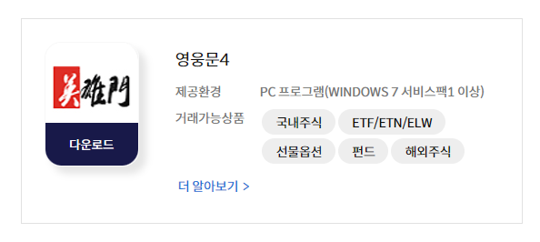 키움증권 영웅문 4 다운로드 하려고 하시나요?